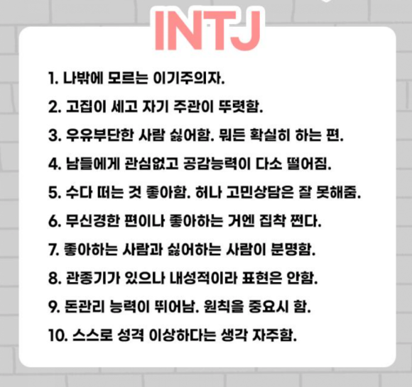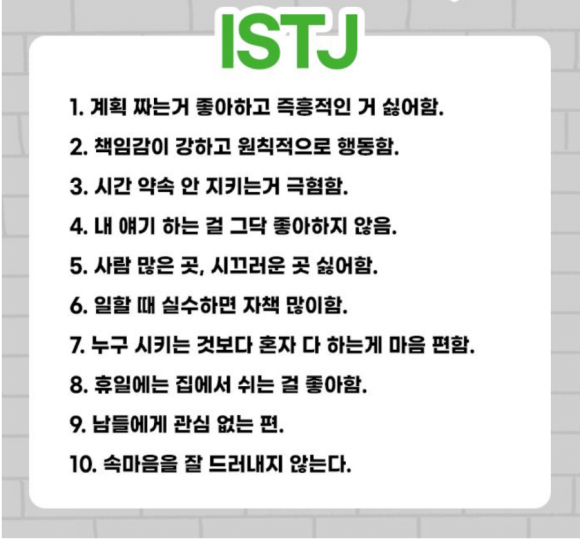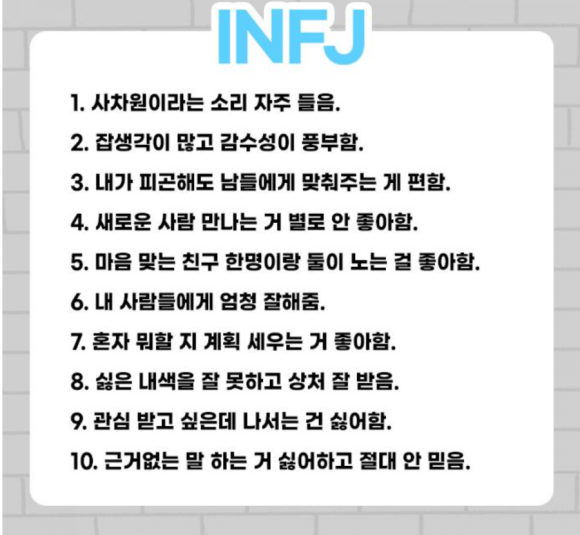 재미로 보는 MBTI - 내향형 팩폭 1 (ISTJ ISFJ INFJ INTJ)