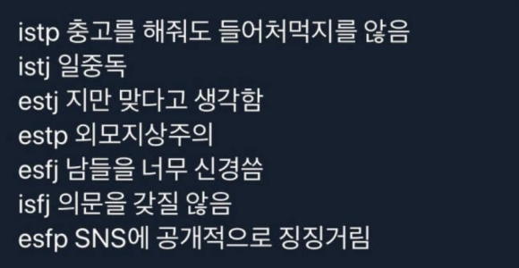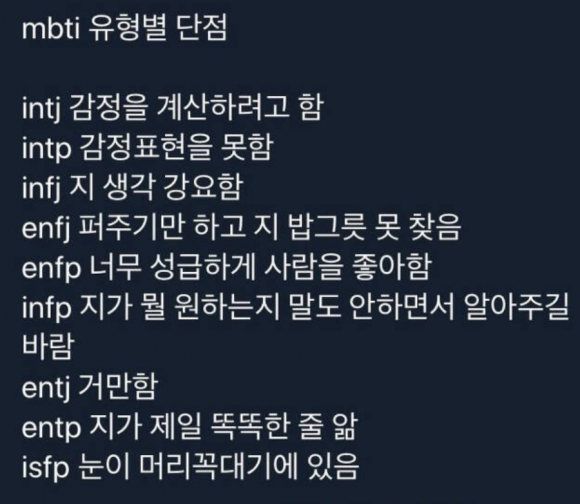 재미로 보는 MBTI - 성격유형별 단점(짤version)