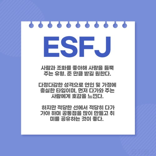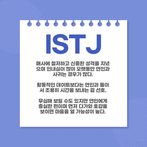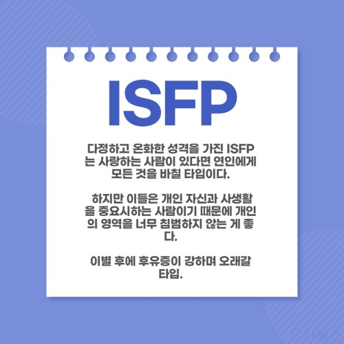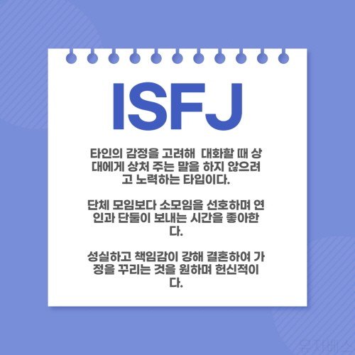재미로 보는 MBTI - 성격유형별 여자친구 특성,ISFJ (0) | 2021.06.19 |
