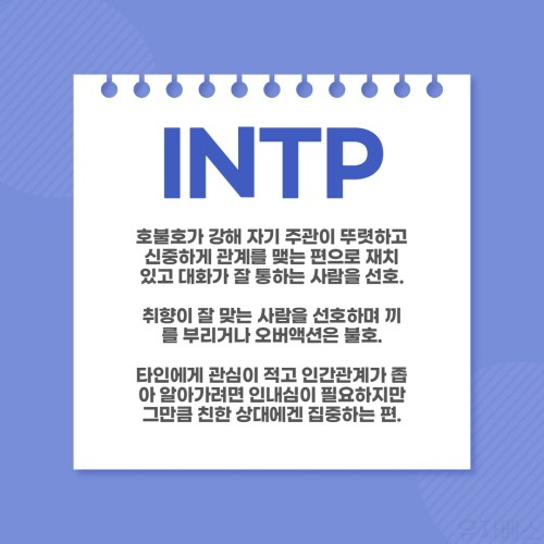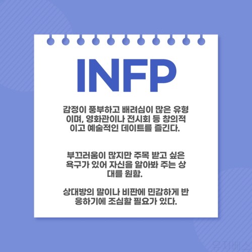| 재미로 보는 MBTI - 성격유형별 여자친구 특성(최종),INFP (0) | 2021.06.19 |