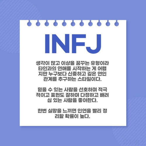 재미로 보는 MBTI - 성격유형별 여자친구 특성,INFJ (0) | 2021.06.19 |