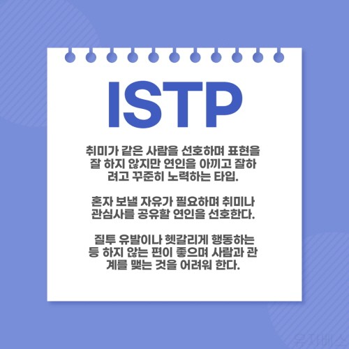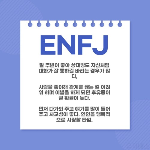 | 재미로 보는 MBTI - 성격유형별 여자친구 특성,ISFJ (0) | 2021.06.19 |