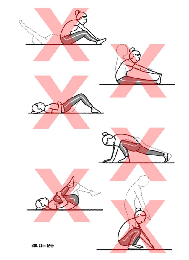 ★하지말라는 운동들을 보면 공통적으로 허리를 구부리는 동작들이 많아..