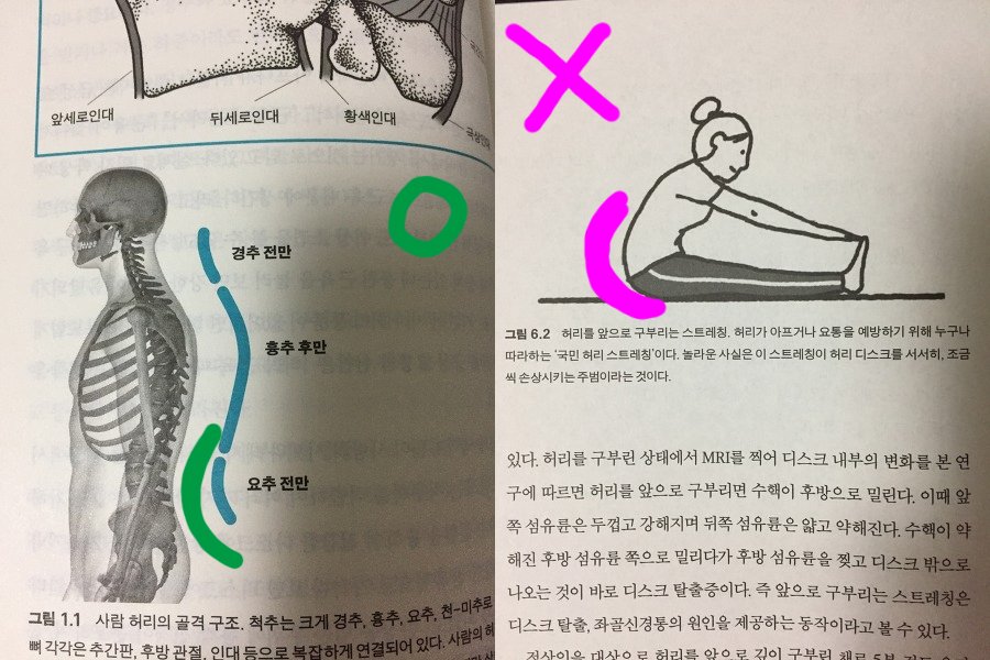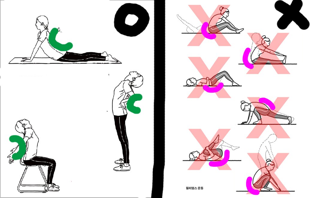 ★★★우리가 흔히 요가에서 좋다고하는 고양이 등 자세나, 헬스장에서 하는 저런 기구들 다 허리에 안좋음.