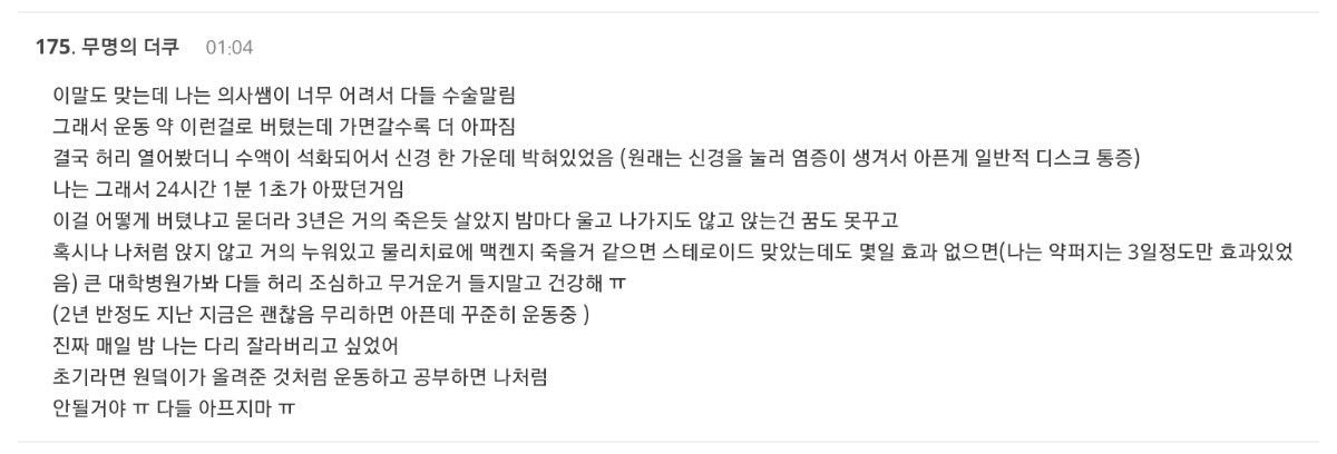 난 더 심했어서 그렇게 기어다니지도 못하고 잘때도 통증이 너무심해서 울면서 자기도했음ㅠ