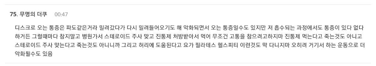 디스크 치료되도 또 재발할 확률이 굉장히 높기때문에