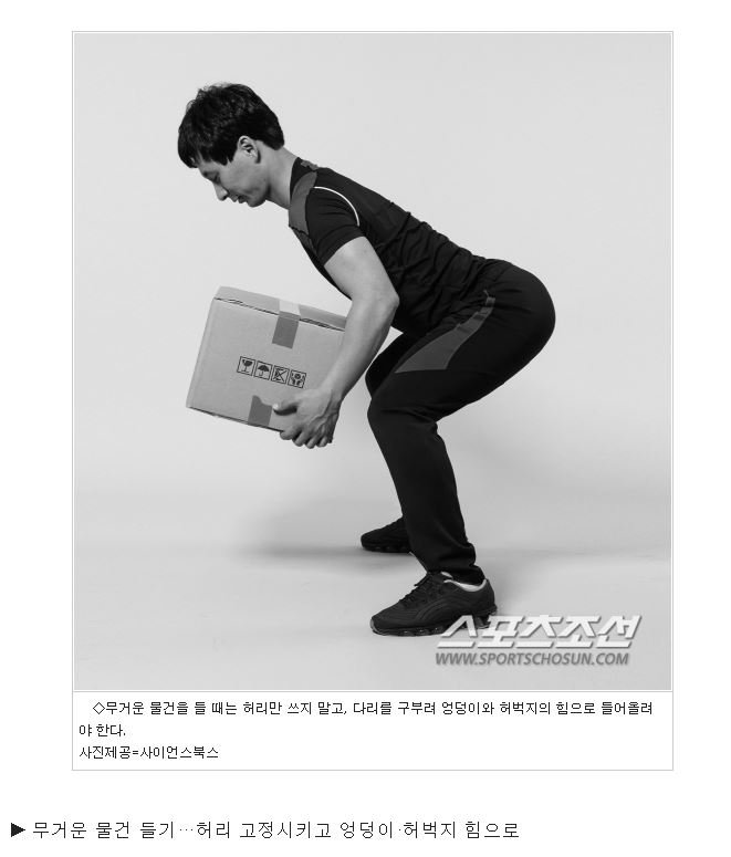 무거운거 들때는 아래와같이 무릎을 구부리면서 허리의 곡선을 유지하면서 드는게 중요함