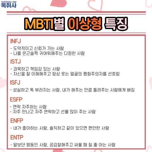 재미로 보는 MBTI - 유형별 이상형 특징
