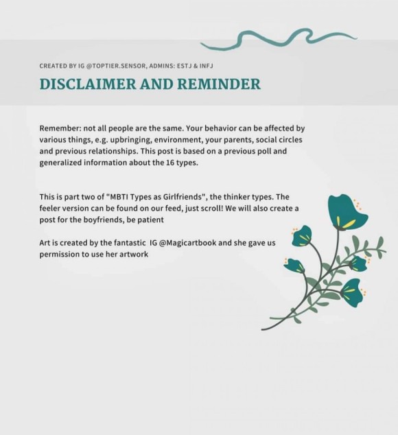 | 재미로 보는 MBTI - 성격유형별 여자친구 특성, ISTJ (0) | 2021.06.19 |