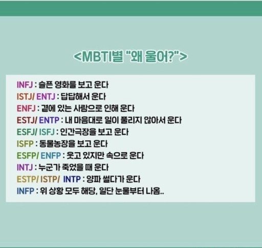 | 재미로 보는 MBTI - 유형별 극혐하는 것들 (1) | 2021.06.20 |