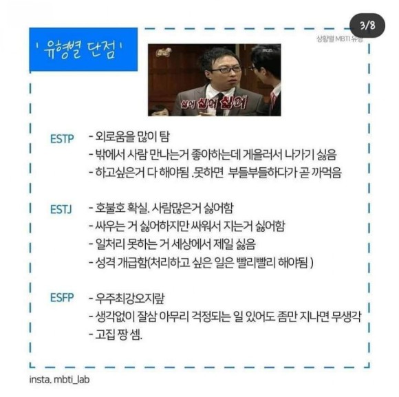 | 재미로 보는 MBTI - 성격유형별 여자친구 특성 ESTJ (0) | 2021.06.19 |