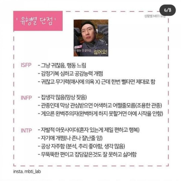 | 재미로 보는 MBTI - 유형별 극혐하는 것들 (1) | 2021.06.20 |