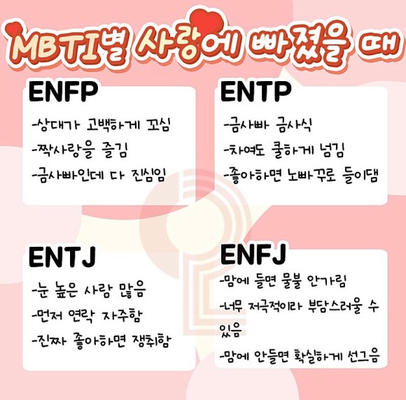 재미로 보는 MBTI - 유형별 사랑에 빠졌을 때