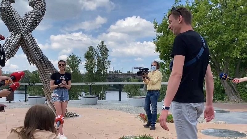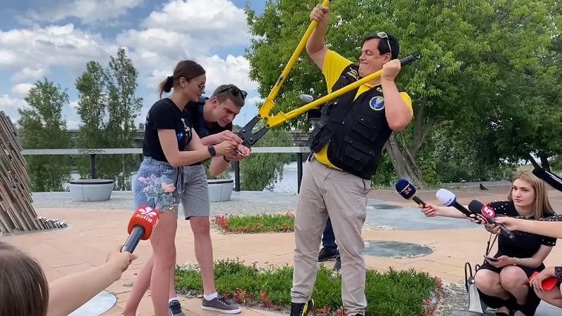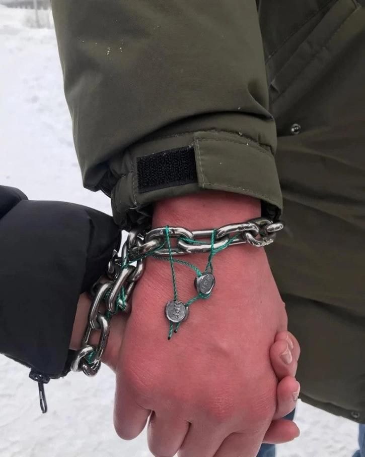 우크라이나의 한 커플이 서로의 손을 쇠사슬로 묶고 123일 지내기를 도전함.