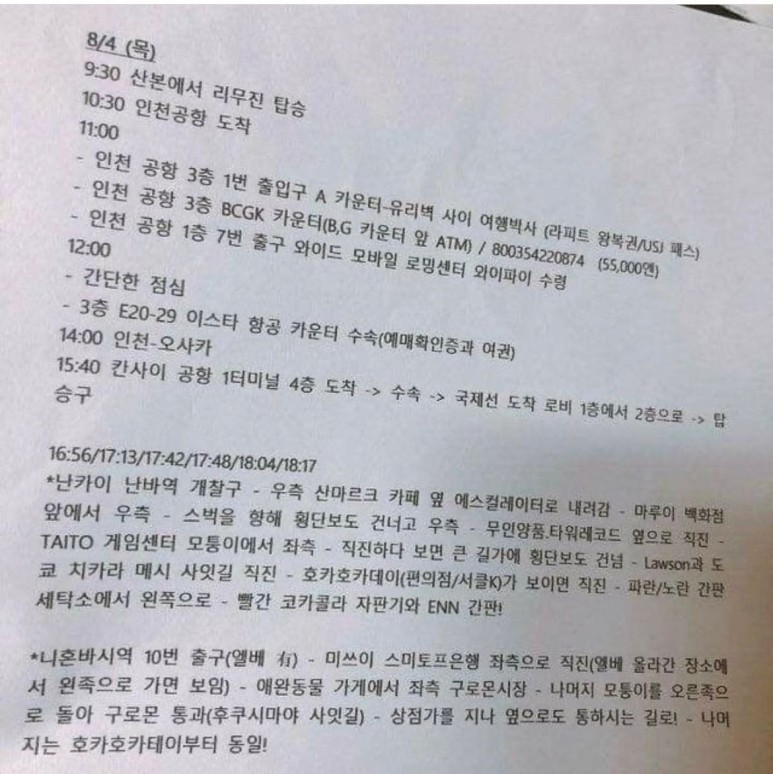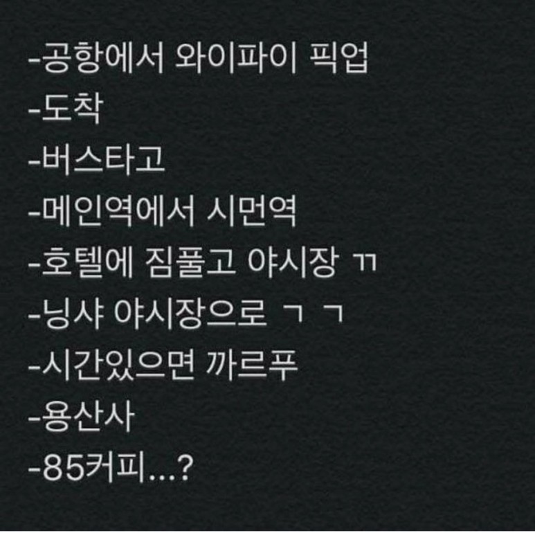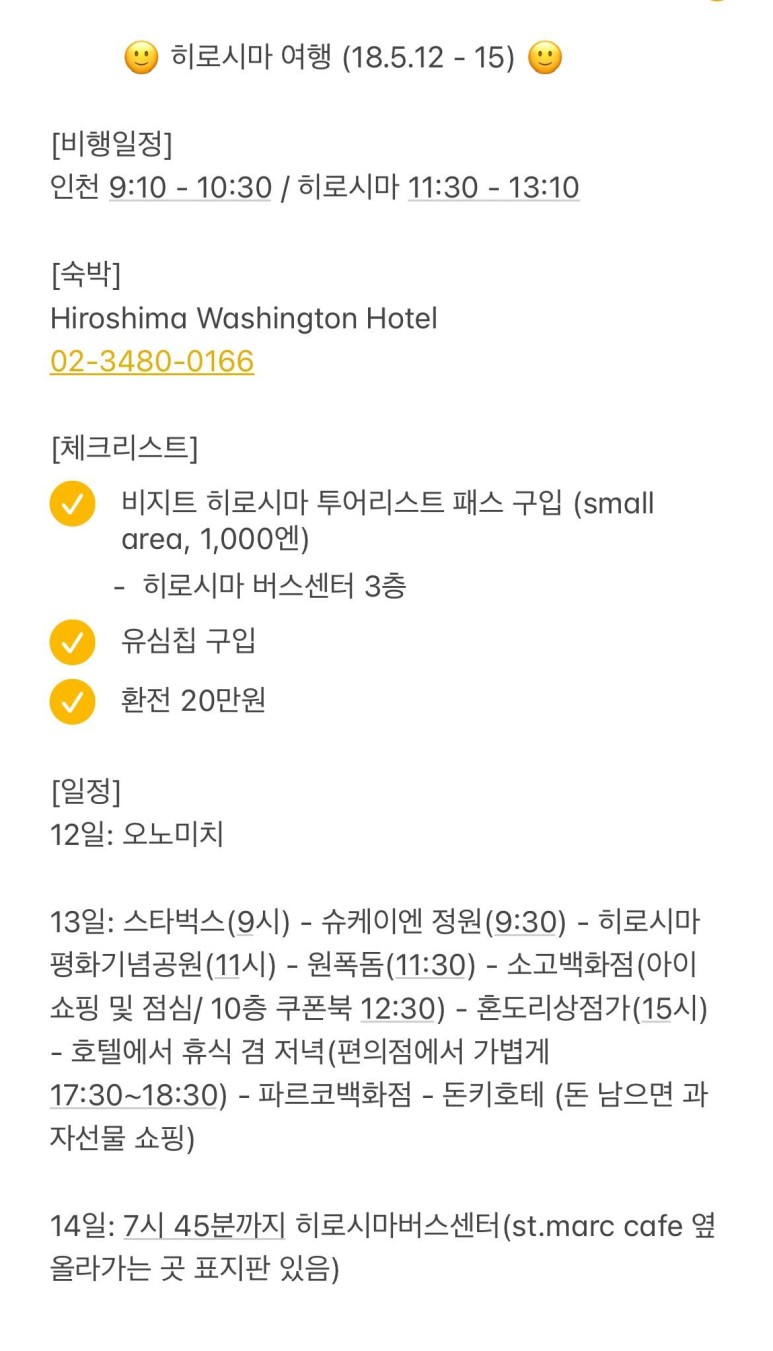 폰 메모장 : 엑셀자료를 토대로 한 현지에서 볼 간략 일정표