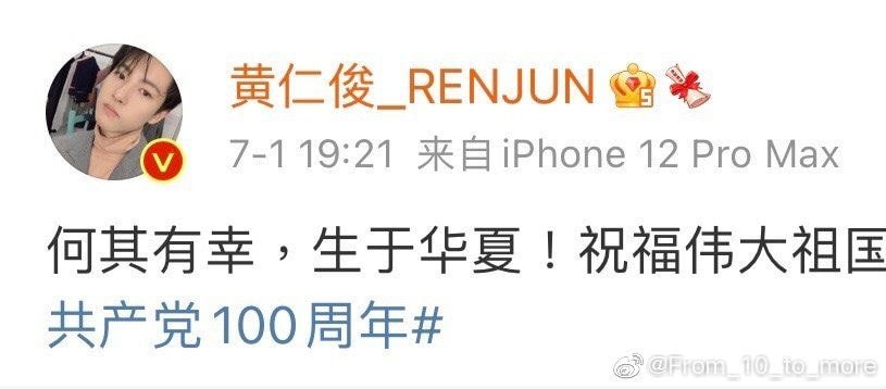 런쥔은 올리는 시간도 19:21로 맞춰서 '공산당시'도 챙김