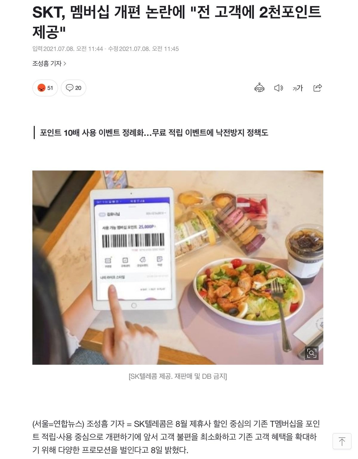 이에 앞서 SKT는 T멤버십의 할인 혜택을 적립식으로 개편하는 것을 골자로 한 '마케팅 플랫폼 서비스'를 8월 중 선보이겠다고 밝혔다. 그러나 온라인 커뮤니티 등에선 이 같은 조치가 장기 고객에 대한 혜택을 축소하고 멤버십 활용 폭을 오히려 좁힌다는 지적이 제기됐다.