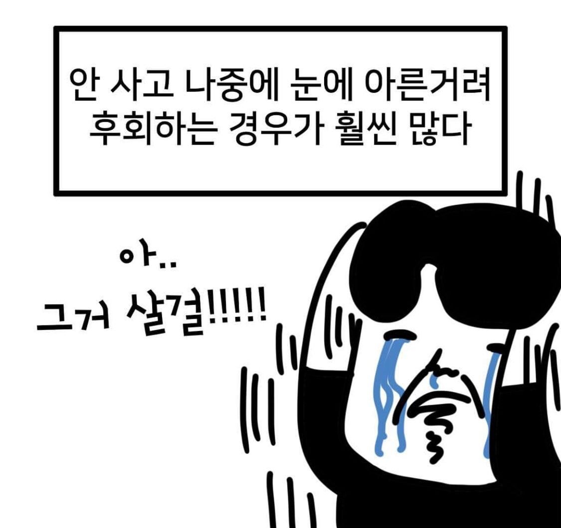 사고 후회하는거 보다 안사고 후회하는게 두고두고 더 마음이 아프다는 개인적인 경험