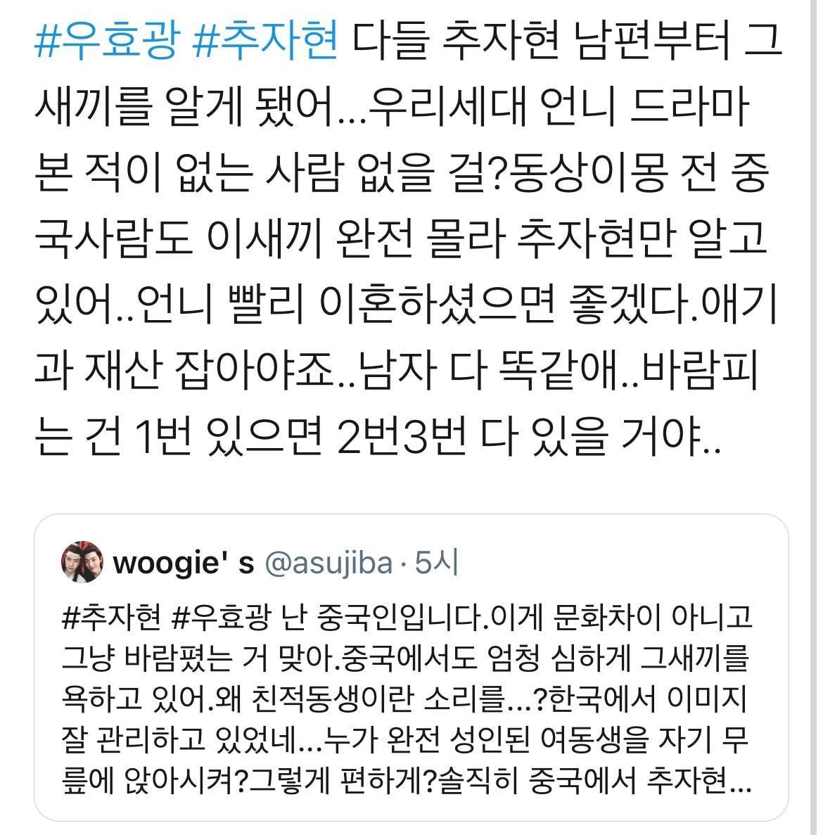 중국인들 현재 반응 니가 감히? 추자현한테? 이런거