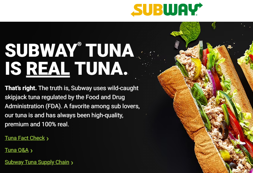 서브웨이의 참치는 진짜라고 주장함.