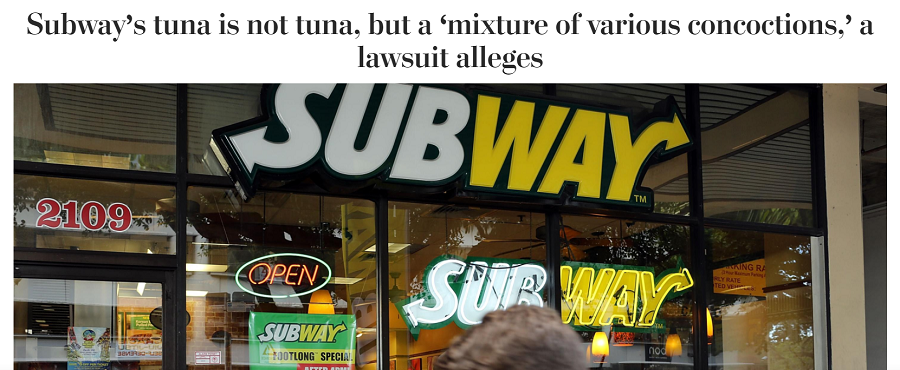 소송 당사자들은 서브웨이 참치 샌드위치를 구매해 참치 부분을 성분분석한 결과