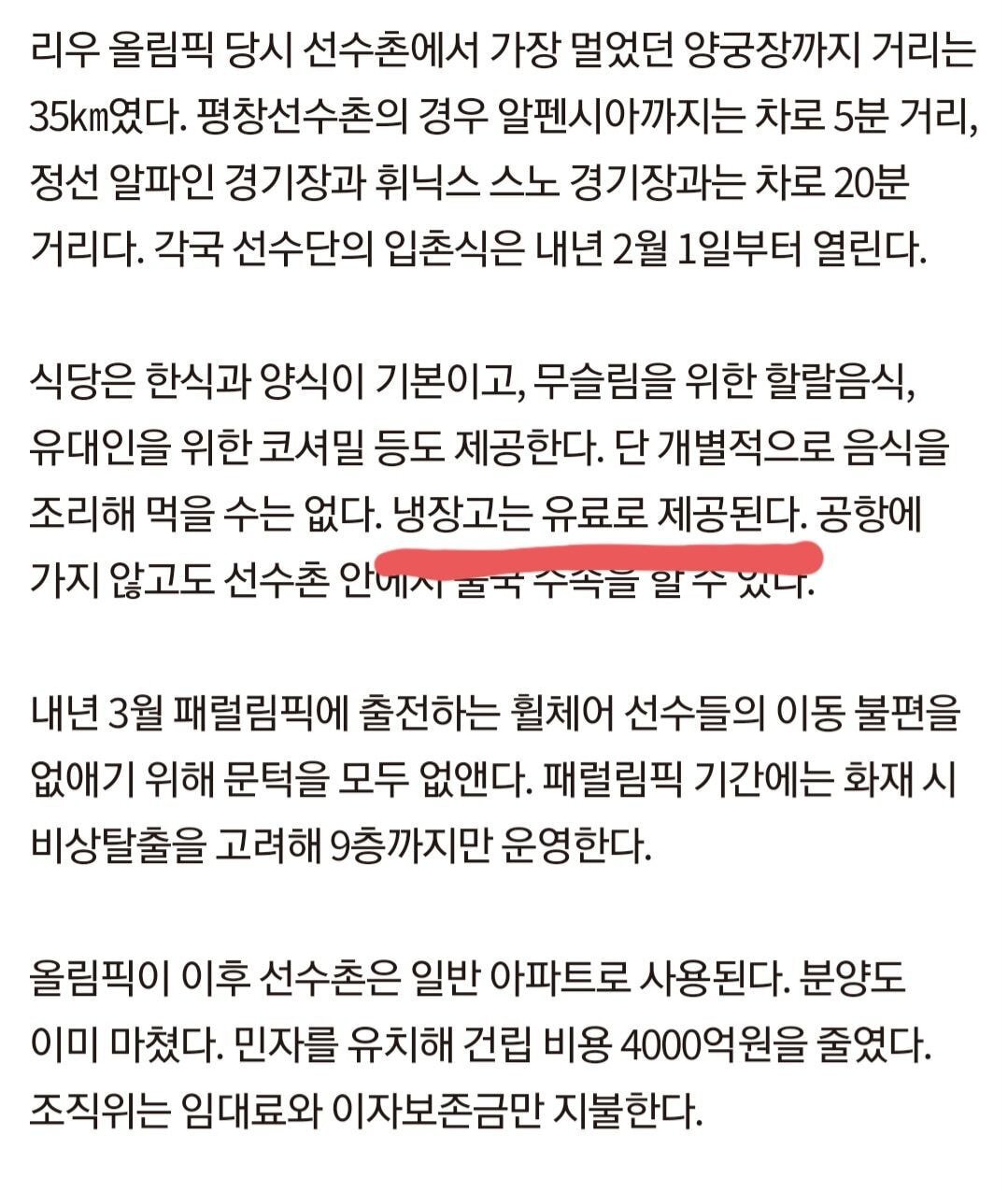 평창도 냉장고는 유료였다함. 댓글에서 tv는 무료였다고 하네..