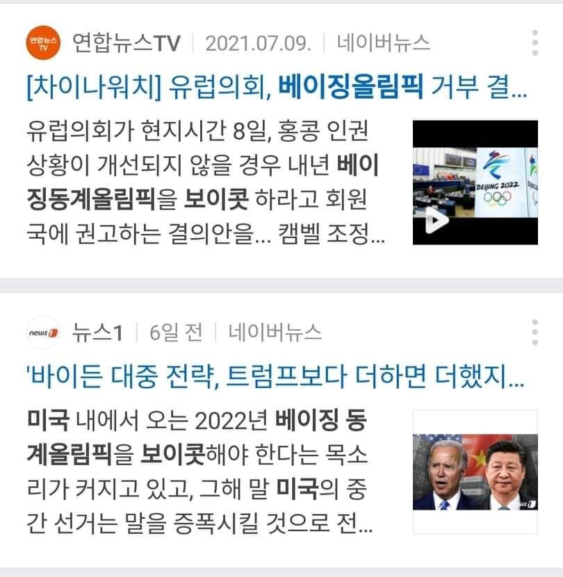 인권문제와 홍콩문제로 미국과 유럽 등 서방은 보이콧 의견이 거세지는 중