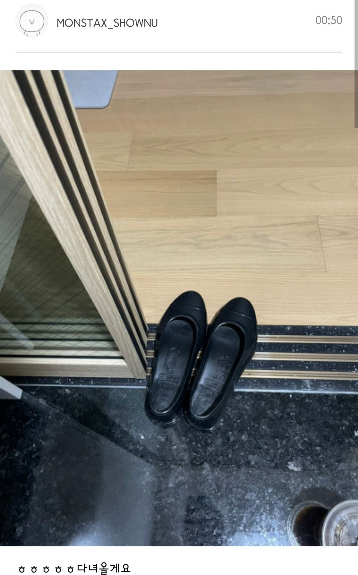 팬들에게 고무신 사진을 남기고 군대가는 셔누.....