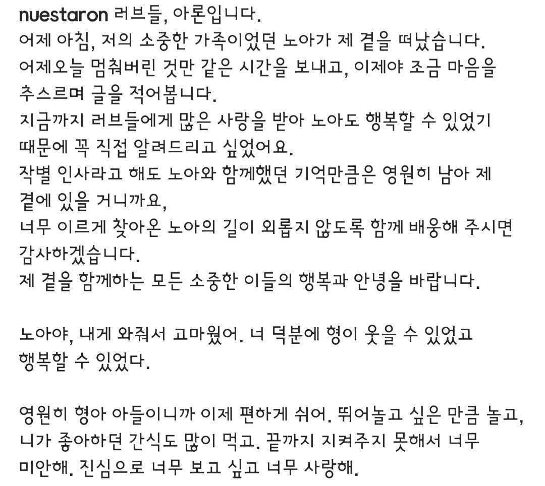 아론도 마음 잘 추스리고 노아도 강아지별에서 행복했으면ㅜ