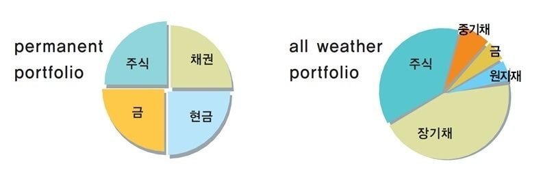 1) permanent(영구) 포트폴리오 ⇒ 주식 : 채권 : 금 : 현금 = 1 : 1 : 1 : 1