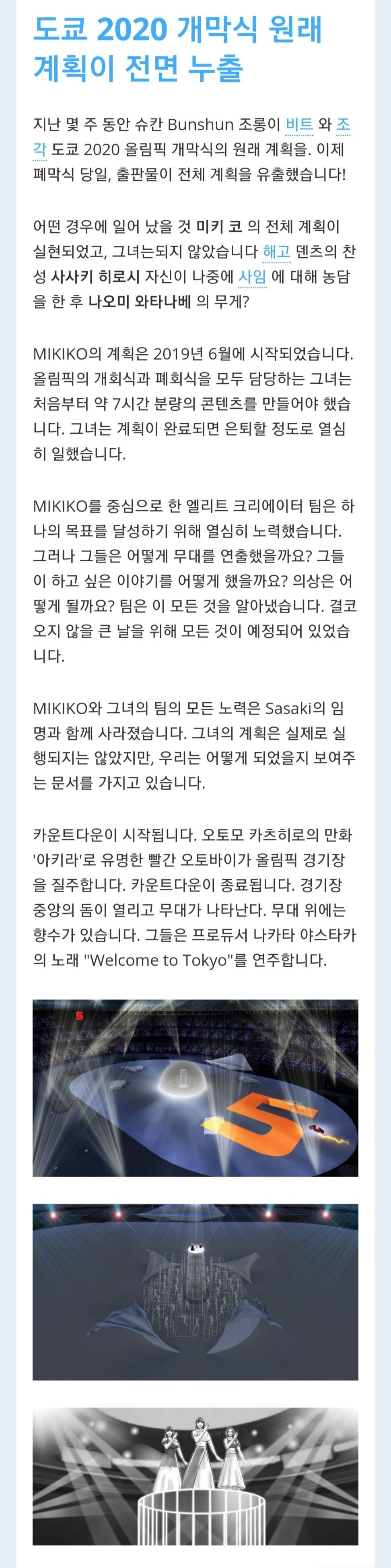 그러나 개회식 연출로 내정된 MIKIKO와 시이나 링고가