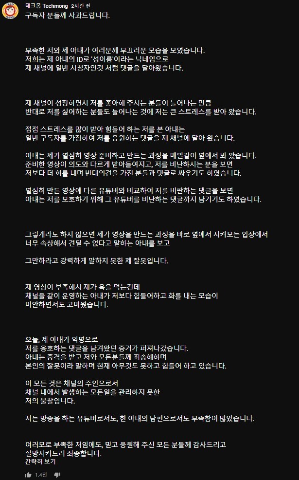나름 진정성 있는 테크유튜버라고 생각했고, 옛날에 탭s4 살때 참고하려고 탭s4 리뷰 올라왓을때 봐온게 시작인데 이게 진짜 사실이라면 진짜 실망임.
