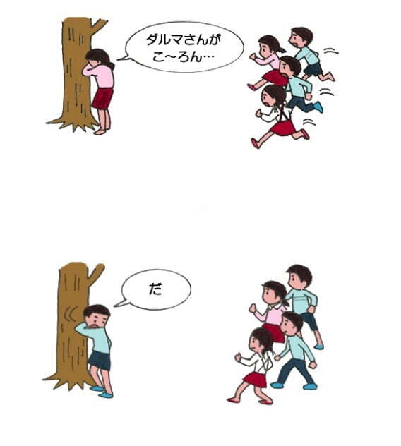 이 게임은 일제 강점기 한국에 전해진 것으로 알려져 있습니다. 다만 일본에서도 '다루마상이 넘어졌구나'에서 '넘어졌구나'라는 뜻을 담은 '고론다(轉んだ·ころんだ)'라는 단어가 한국어 '걸어온다'에서 유래한 것이란 분석도 있다고 하니, 게임의 전파가 꼭 한 방향으로만 진행된 것은 아닐 수도 있다는 생각도 듭니다.