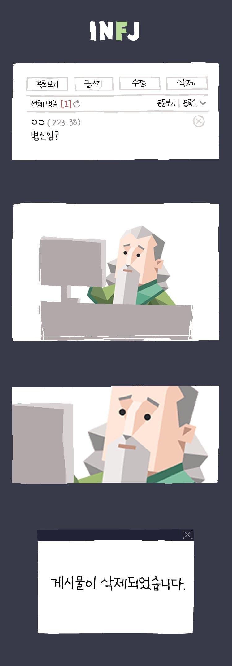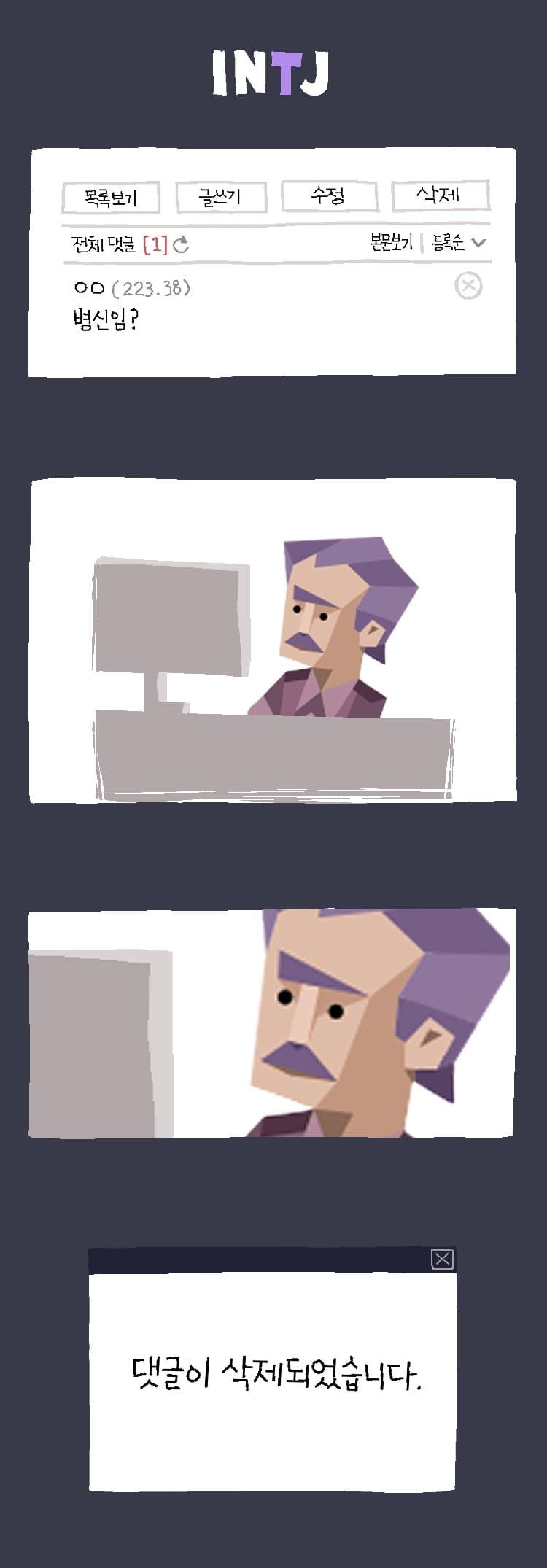 방금 쓴 게시글에 욕이 달렸을 경우 IN_J 차이.