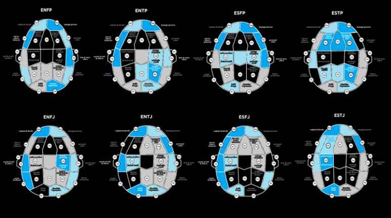 유형별로 주로 사용하는 뇌기능과 아닌 기능이 나뉘는데 ENFP, ENTP 두 유형은 외부 자극 강도에 따라 뇌의 모든 기능을 동시다발적으로 사용한다. 외향직관의 특징과 유사하며 뇌파가 마구잡이로 빤짝이는 모습 때문에 '크리스마스 트리'라는 별명이 있다.