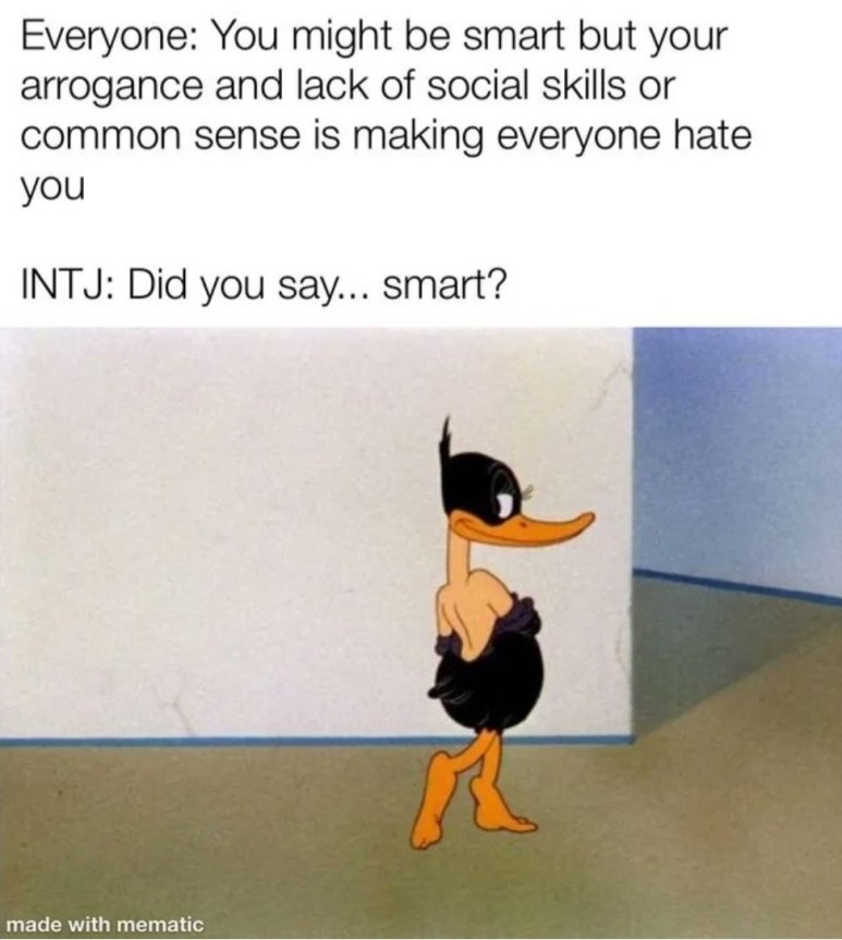 사람들: 야 인티제, 니가 솔직히 똑똑하긴 해도 사람들은 네 오만함과 사회성부족, 상식부족때문에 널 싫어하게 될거야!