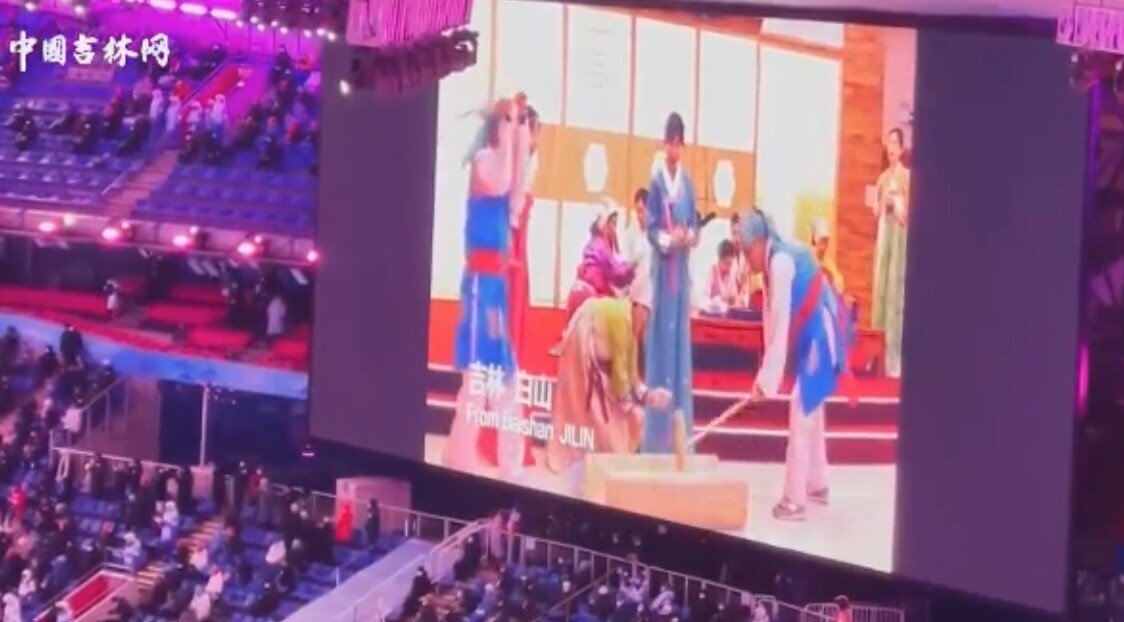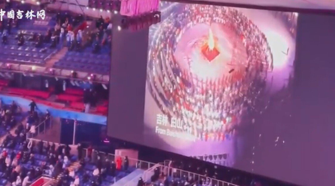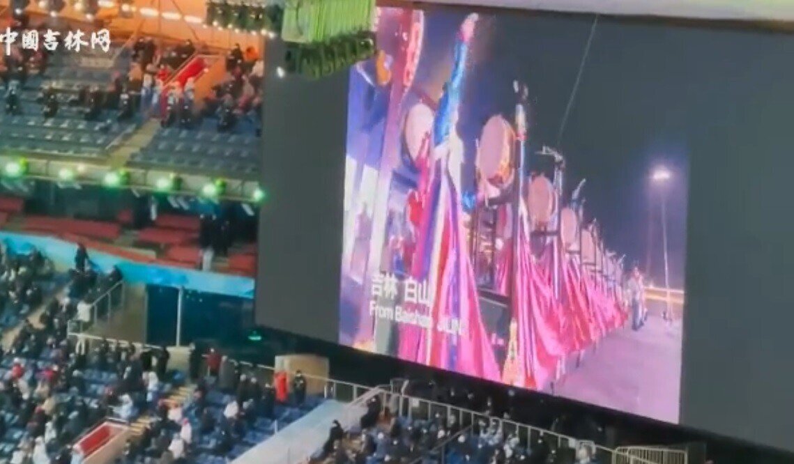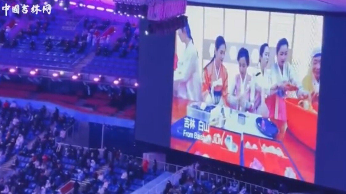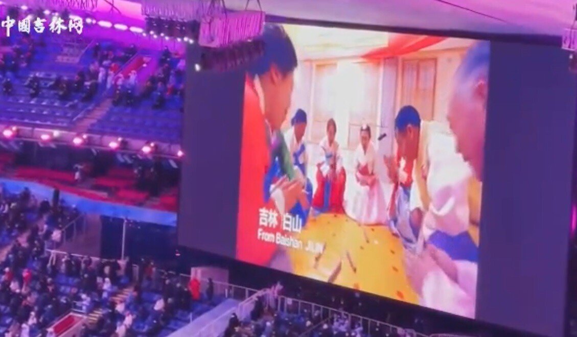 중국의 일부인 길림성 (장)백산에서 베이징 올림픽의 성공 개최를 기원한다는 영상.