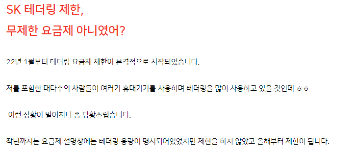 1. 2022년 부터 무제한 요금제 써도 핫스팟 용량 제한 생김