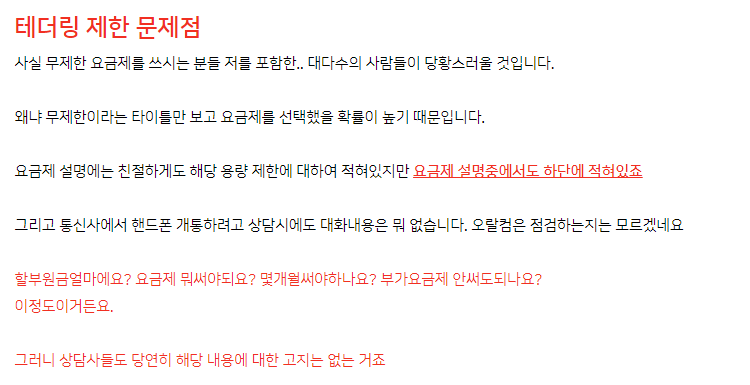 2. sk 같은 경우에는 무제한 요금제 쓰면 데이터 리필도 불가능함