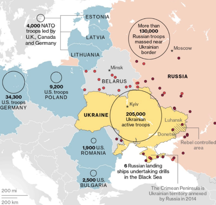 때문에 푸틴은 나토 가입을 하면 우크라이나를 죽이겠다고 강력하게 협박하며 러시아군을 우크라이나 국경선에 전진배치.