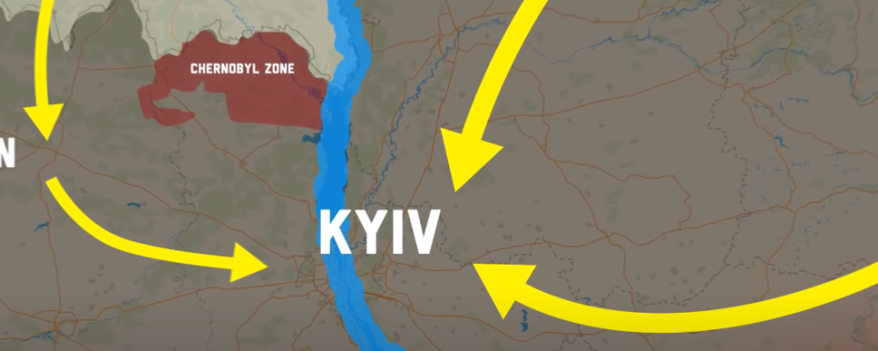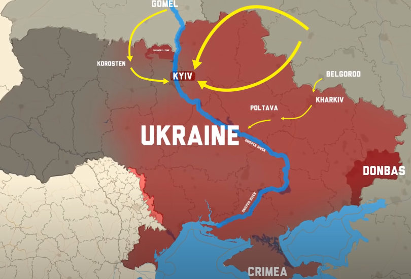 우선 저기 동그라미친 곳이 수도인 키에프이고 침공군의 최종적인 목적지야
