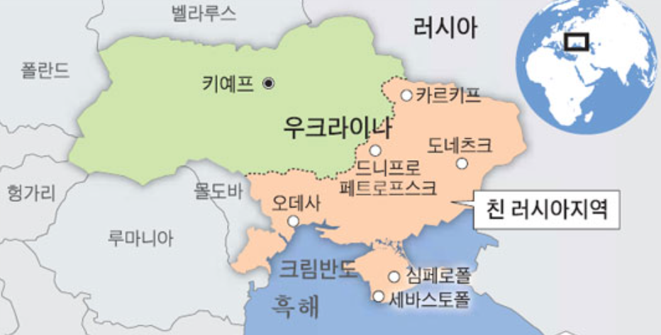 이미 남부의 크림반도는 러시아에게 병합당했고, 동부에서는 현지 러시아인들이 분리독립을 주장하며 내전중이야