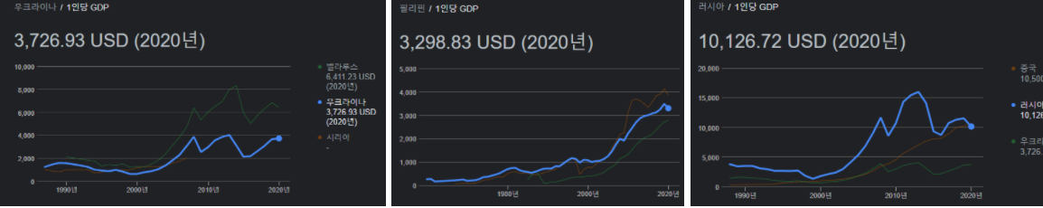 우크라이나 1인당 GDP가 대충 3700달러 수준인데 필리핀이 인당 3300$ 수준이거든?