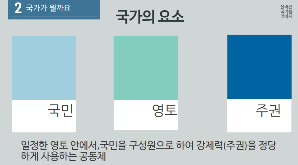국가의 3요소는 국민과 영토 그리고 주권이야