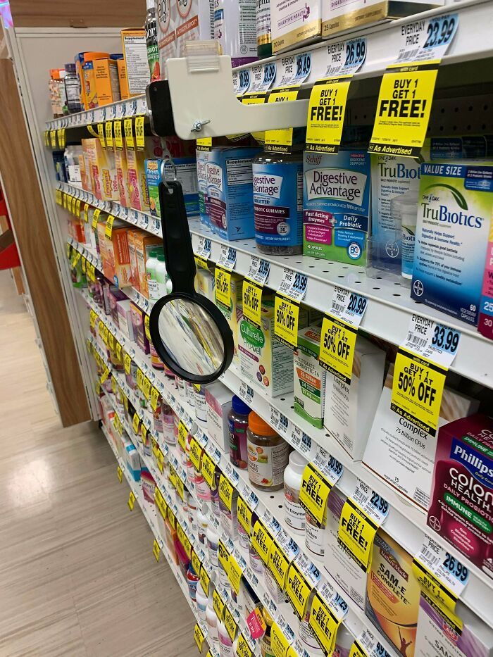 노안인 사람들이 성분을 쉽게 확인할 수 있게 돋보기를 겸비