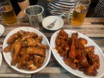 후라이드 반 양념 반이 너무 바삭해서 치킨이 과자 같다는 생각이 듬. 생맥주도 역시나 존맛임