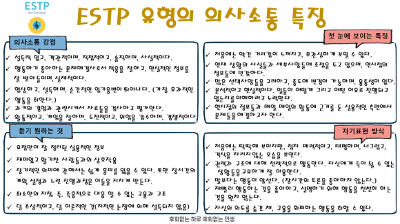 | ESTP 유형의 의사소통 특징 (0) | 2022.11.02 |