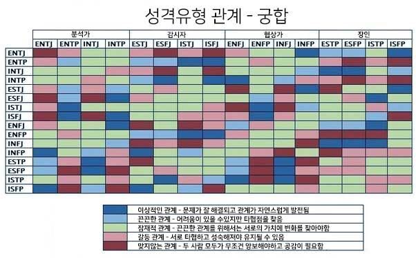 온라인에서 많이 돌아다니는 위의 표는 잘못된 궁합이고,