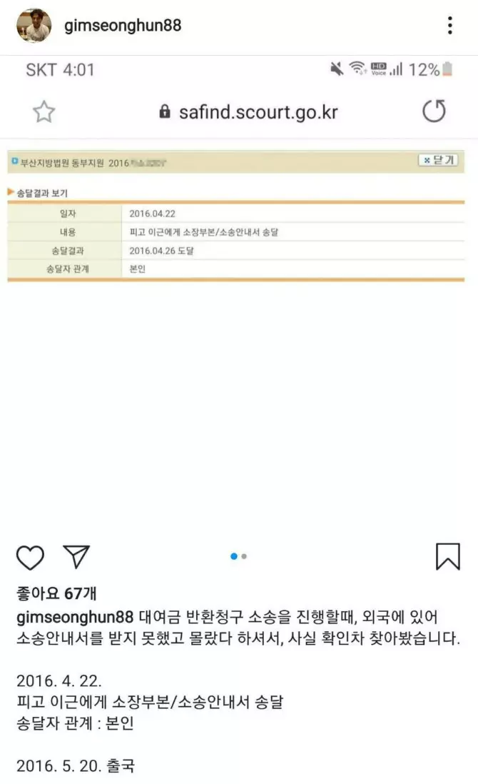본인은 해외 나가있어서 가족이 받았다는 증언에 대한 반박자료 올라왔다가 내려감