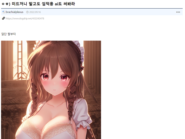 지금도 개드립에 간간히 올라오는 AI 그림들은 대부분 이 stable diffusion을 기반으로 하는 모델로 그렸다고 할 수 있다. Novel AI같은 것도 stable diffusion 기반으로 만들어졌다.
